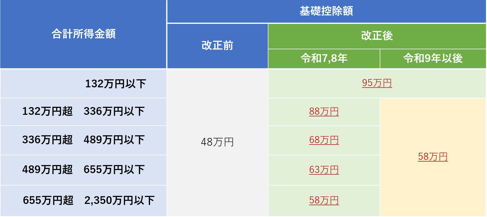 令和7年度から、合計所得金額に応じて、基礎控除額が改正されました。