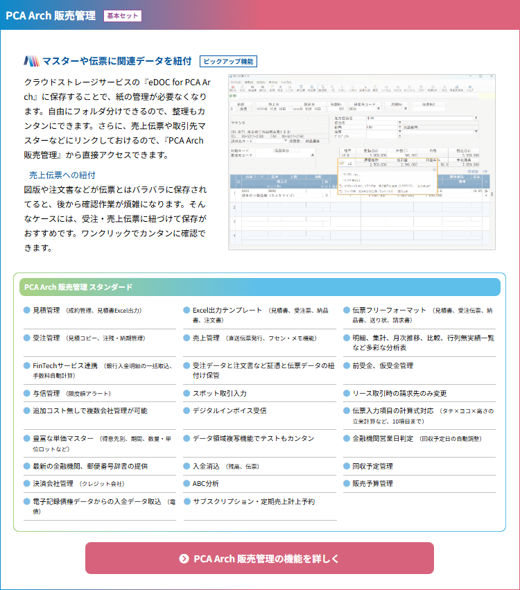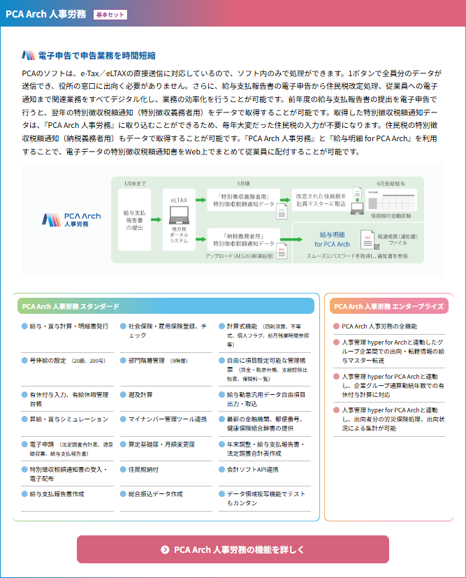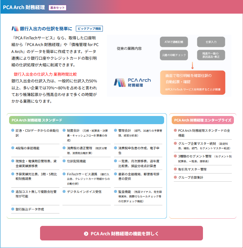 PCAクラウド「財務経理・人事労務・販売管理クラウド『PCA Arch』」(https://pca.jp/arch/index.html)